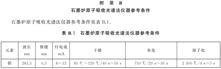 注:可根據(jù)儀器的靈敏度及樣品中鉛的實際含量確定標準系列溶液中鉛的質(zhì)量濃度。
