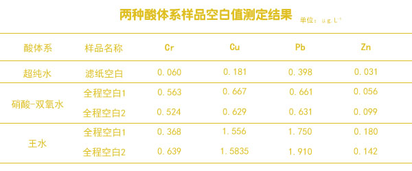 兩種酸體系樣品空白值測定結果