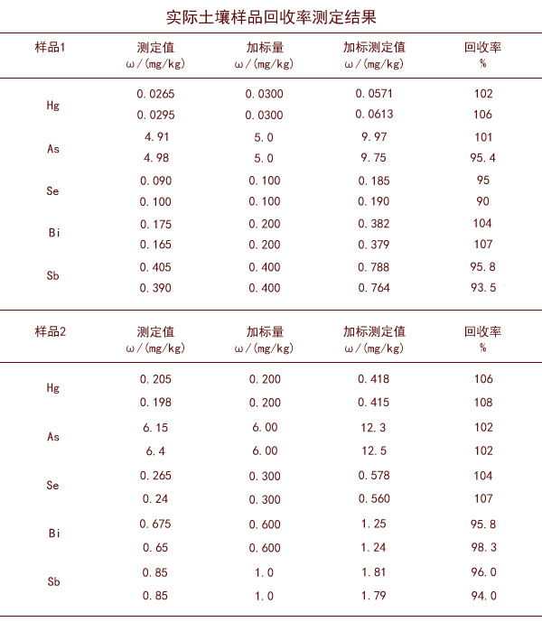實(shí)際土壤樣品消解測(cè)定回收率結(jié)果