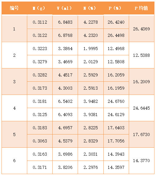 3)消解完成后,冷卻至室溫,用凱氏定氮儀進(jìn)行蒸餾滴定,打印出檢測結(jié)果。同時(shí)做空白實(shí)驗(yàn)。