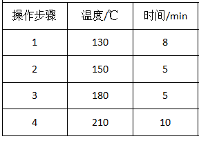準確稱取過100目篩的土壤樣品0.5000(±0.0002) g于消解管中,加入消解體系,搖勻,加蓋密封后放入智能石墨消解儀中,按照表1的儀器條件完成操作后,待溫度降到80 C以下時,取出消解管,用去離子水轉(zhuǎn)移至50 mL容量瓶中定容,用原子吸收分光光度計測定。消解的工作條件見表1。
