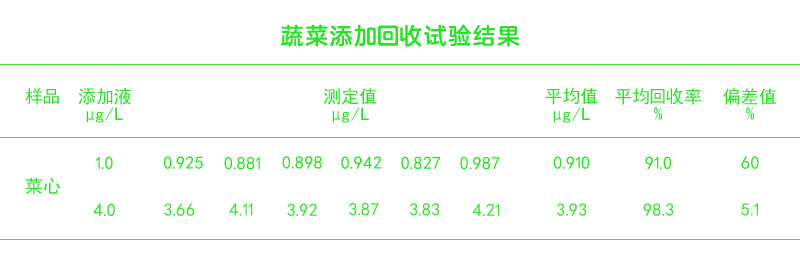 蔬菜添加回收試驗(yàn)結(jié)果