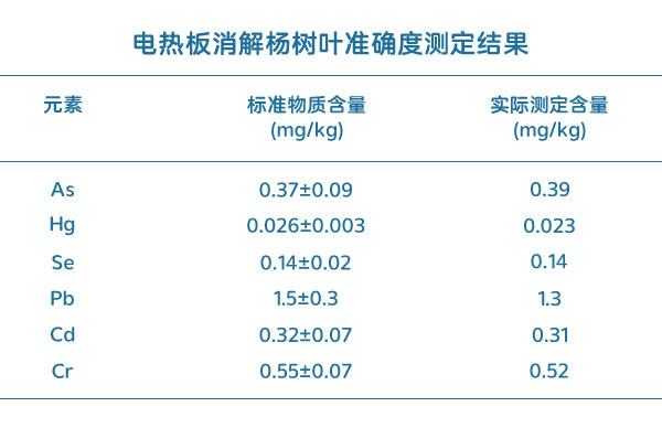 加熱板消解楊樹葉準確性測定結(jié)果