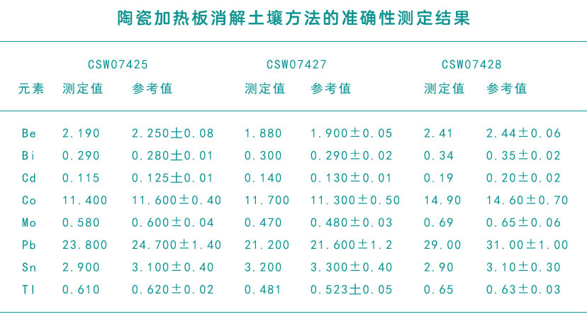 陶瓷加熱板消解土壤方法準(zhǔn)確性測定結(jié)果