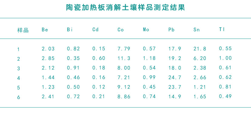 陶瓷加熱板消解土壤樣品測定結(jié)果