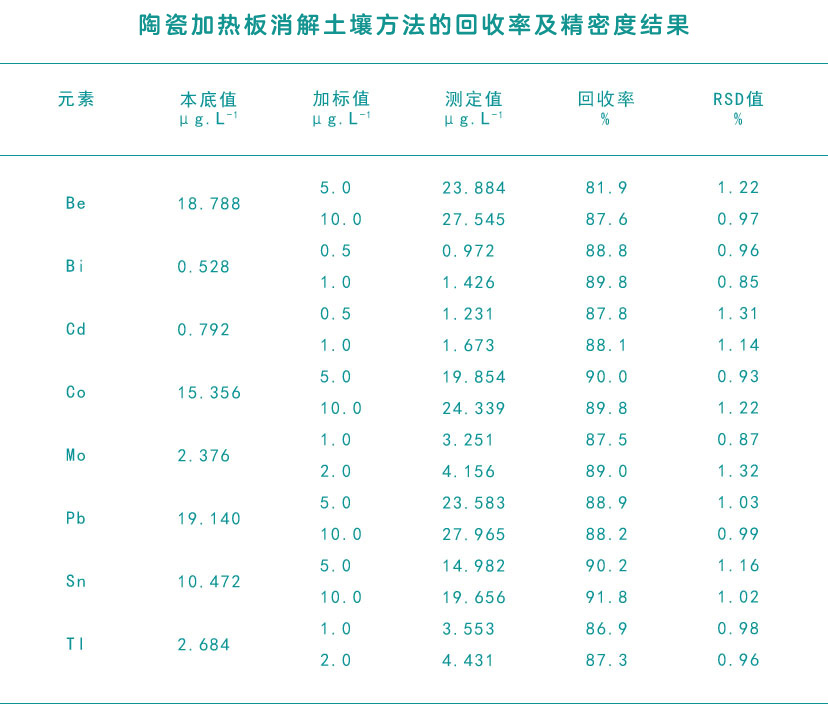 陶瓷加熱板消解土壤方法的精密度及回收率測定結(jié)果