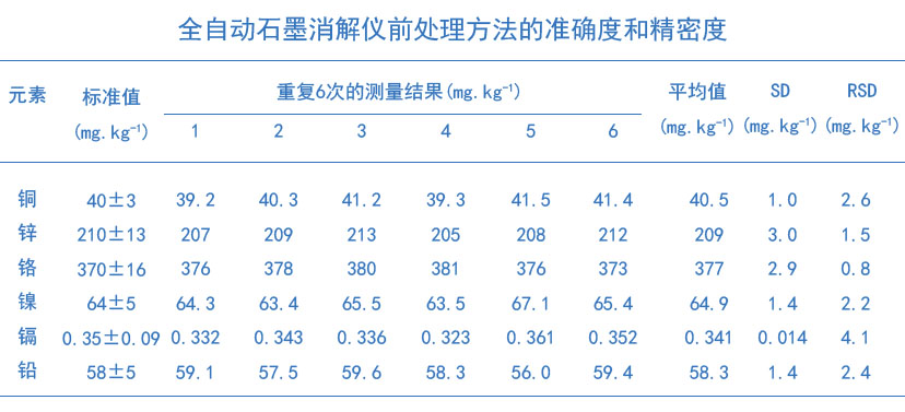 本文通過(guò)格丹納全自動(dòng)石墨消解儀,采用雙氧水代替高氯酸,使用硝酸-氫氟酸-雙氧水體系通過(guò)全自動(dòng)石墨消解儀進(jìn)行程序消解,測(cè)定常規(guī)土壤中銅、鋅、鉛、鎘、鉻、鎳等元素,該法的改進(jìn)有利于提高重金屬分析的效率,避免高氯酸的使用不當(dāng)造成元素?fù)p失,相對(duì)傳統(tǒng)方法消解處理更加快速、消解完全,操作簡(jiǎn)單智能化,同時(shí)危險(xiǎn)性大大降低,也減少了人工操作過(guò)程產(chǎn)生的誤差,使檢測(cè)數(shù)據(jù)更加準(zhǔn)確。