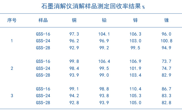 (2)由圖表3、圖表4可以看出三種程序消解樣品的土壤重金屬銅、鉛、鋅都有很好的消解回收,但是第一種程序?qū)χ亟饘冁嚨幕厥蘸?,對土壤?biāo)準(zhǔn)物質(zhì)GSS-16、GSS-24和GSS-28的回收率分別達(dá)到了96.0%、100.1%和94.9%。