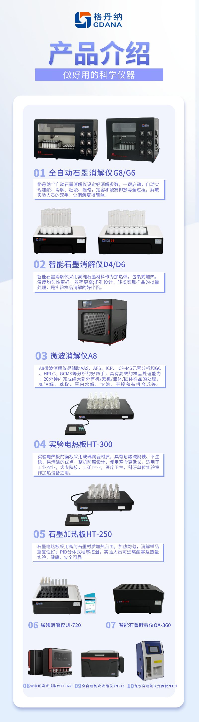 廣州格丹納儀器有限公司坐落于千年商都廣州,是一家以研發(fā)、生產(chǎn)、銷售為一體的高新技術(shù)企業(yè)。公司 2014 年創(chuàng)立以來,擁有由業(yè)內(nèi)知名專家教授領(lǐng)銜的高端研發(fā)和應(yīng)用團(tuán)隊(duì),提供以產(chǎn)品研發(fā)生產(chǎn)、銷售、售后和增值服務(wù)為一體的行業(yè)解決方案,專業(yè)為客戶打造個(gè)性化的特色服務(wù)。